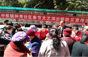 近日,中枢镇钟秀社区在秀山小广场组织开展2018年春节文艺演出暨防艾知识宣传,让居民群众在观看文艺节目演…
