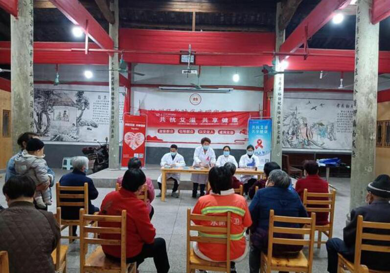 11月16日上午,上饶市皮肤病性病防治所在刘家坞社区开展“共抗艾滋 共享健康”艾滋病防治宣传检测活动。