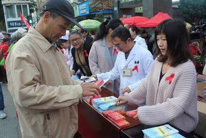 云南澜沧:宣传防艾上街头 发出千只安全套