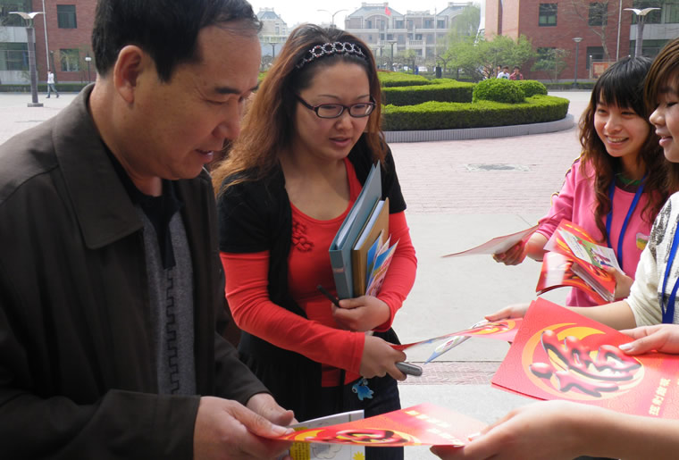 通州 音乐学院学生处李处长和徐静老师接过宣传资料