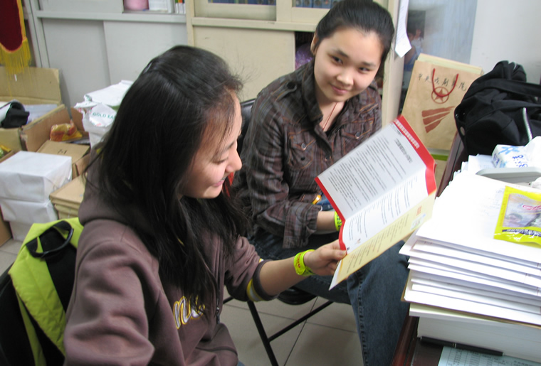 通州 音乐学院学生处李处长和徐静老师接过宣传资料