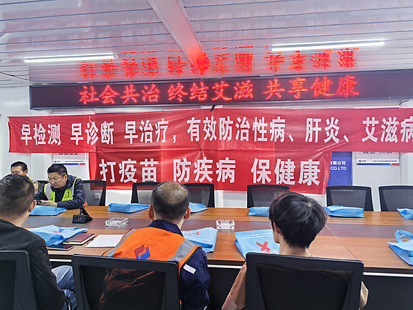4月22日,区疾控中心联合区住建委深入中国电建北京门头沟长安华曦府项目部开展针对流动人口的防病宣传讲座,性病艾滋病控制科和计划免疫科参加,现场有40余名建筑工人听取讲座。