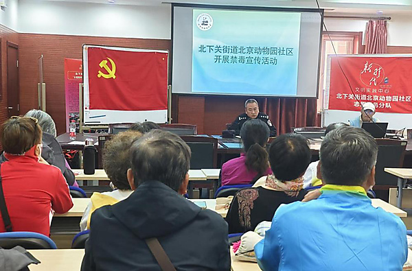 为提高辖区安全稳定,4月21日,海淀区北下关街道平安建设办公室联合大钟寺派出所、社区居干在北京市动物园社区组织居民开展禁毒宣传活动。