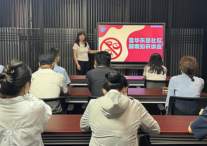 为深入推进“禁毒宣传月”工作,进一步提高广大居民群众识毒、防毒、拒毒意识,增强抵制毒品的能力,营造良好的禁毒氛围,6月19日,兴丰街道禁毒办走进富华东里社区开展禁毒宣传活动。