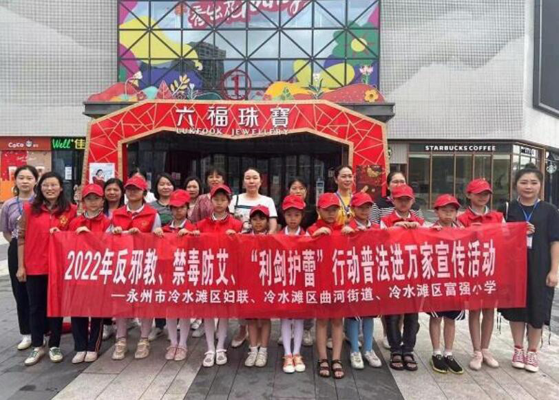 近日,冷水滩区妇联、冷水滩区妈妈禁毒协会成员、曲河街道、富强小学等多部门,在万达广场开展2022年反邪教…