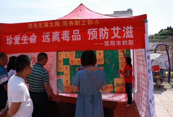 2020年6月5日,简阳市妇联联合市卫健局、市总工会、团市委、市性病艾滋病防治协会,在省定贫困村江源镇红台…
