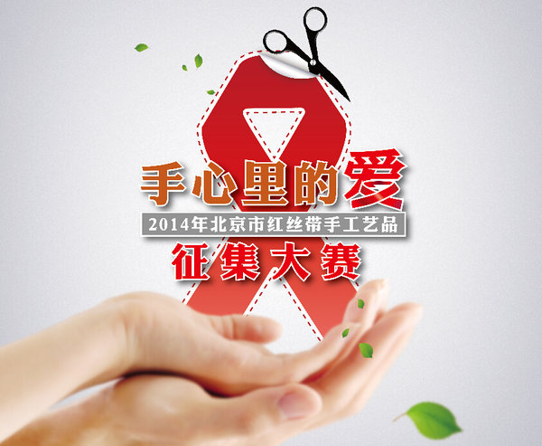 “手心里的爱----2014年北京市红丝带手工艺品征集大赛”以社区为切入点,倡导公众主动了解艾滋病,学习有关政策,并根据自我理解,创作相关主题手工艺品。通过收集、整理,评选出一批寓意深刻,感人至深的优秀作品,并将无数家庭“手心里的爱”通过手工艺作品这一载体传递给艾滋病感染者和病人,让他们感受到社会的理解和关爱。