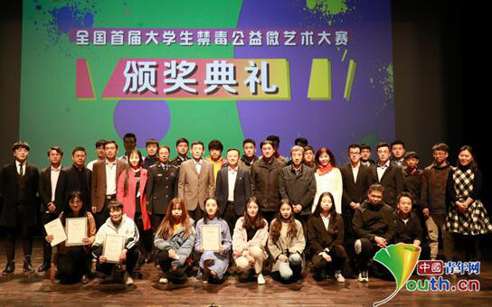 3月29日,全国首届大学生禁毒公益微艺术大赛颁奖典礼在北京电影学院举行。中央戏剧学院陈斯远的作品《鸟》、中国传媒大学的作品《凋零》、北京电影学院的作品《你可能不知道》、西南民族大学罗涵秋的作品《禁毒你我他》等12件作品荣获一等奖。