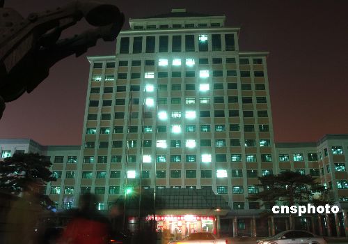 组图:北京校园大楼亮起抗艾灯光标志