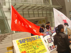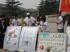 本次活动主会场设在北方工业大学,其他3所高校作为分会场。各个高校都把活动时间定在学生中午吃饭时,并且选择人流量大的地方。活动现场各个高校除了悬挂防治艾滋病宣传横幅、口号,摆放活动宣传易拉宝,还通过自己的方式设计制作了各种宣传板。志愿者通过向过往学生发放艾滋病宣传材料、防艾宣传礼品以及安全套等方式积极向大家宣传艾滋病防控知识,介绍活动内容,同时向大家发放防艾志愿者报名表,鼓励大家积极参与到防艾志愿者的队伍中来。由于活动开始之前,各高校都通过校广播、宣传栏、海报等多种途径对活动进行了广泛宣传,整个活动现场人群聚集,大家踊跃报名。