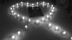 5月16日晚,在市疾病控制中心美沙酮治疗门诊活动室,10多名艾滋病感染者及病人手牵着手,围着“心形”烛光,悼念那些被艾滋病夺去生命的亲人和朋友,鼓励身边的艾滋病人顽强地生活下去。
