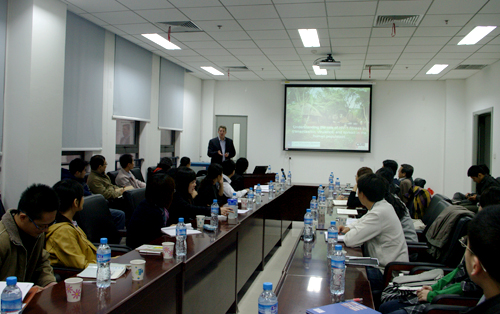 Eric J. Arts教授做了题为“Understanding the role of HIV-1 fitness in transmission, virulence, and spread in the human population”的精彩报告,博得了现场热烈反响。Eric J. Arts教授是世界上最早建立艾滋病病毒适应性(fitness)分析系统的年轻教授,他对艾滋病病毒适应性的基本概念、系统建立及其应用以及与艾滋病传播的关系等一一做了全面的阐述。