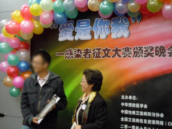 颁奖活动充满爱和帮助。除了热心的朋友自发布置场地,更有来自全国各地的同志社区的朋友自发排练了精彩的节目为晚会助兴。晚上七点整,晚会在“朋友别哭”的合唱中拉开了序幕。来自中国疾控中心性艾中心、中华预防医学会和中国性病艾滋病防治协会的领导和工作人员,以及中国男同论坛主席童戈、中国感染者联盟秘书处协调人孟林、笑看未来艺术坊负责人宋鹏飞都出席了颁奖活动。很多朋友看到消息来到现场,使得本来只能容纳几十人的现场座无虚席,没有座位的观众只得站在场边,可是这也不影响他们参与的热情。