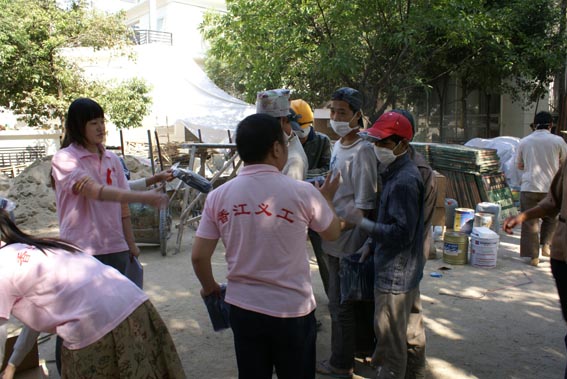 香江义工和志愿者走进工地发放健康包