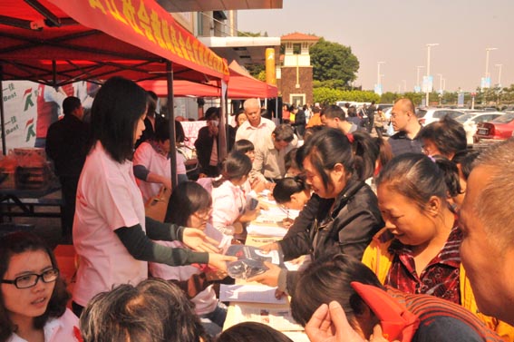 启动仪式结束后,由香江集团员工和广东女子职业技术学院在校大学生组成的三十多名香江义工在工地、城中村等农民工聚集地派发了广东地区首批近千个健康包,每个健康包包括健康知识手册以及安全套、口罩、创可贴、香皂等卫生工具。