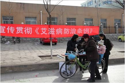 2011年3月1日是《艾滋病防治条例》颁布5周年,为了更加深入地宣传贯彻《艾滋病防治条例》(以下简称《条例》),提高老百姓的艾滋病知识知晓率及自我防护意识,减少社会对艾滋病病人和感染者的歧视,把艾 滋病防治工作纳入法制化轨道,达到保障人体健康和公共卫生的目的,密云县疾病预防控制中心于3月1日上午9:00-10:00在密云县疾控中心大门口开展了《艾滋病防治条例》宣传活动。