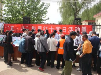 为落实农村艾滋病防治知识宣传教育工作,顺利完成本年度农村居民艾滋病知识水平达到85%的工作要求, 5月10日,以“世界红十字日”宣传周为契机,顺义区疾控中心与区红十字会联合开展宣传活动,将艾滋病防控知识送到前来张镇大集置办农副产品的农村居民中间。宣传活动现场以悬挂条幅、展示展板、发放多种宣传折页、海报、小礼品等形式为主,通过免费测量血压和现场咨询等方式吸引众多群众纷纷驻足,争相领取宣传品并接受艾滋病防控知识介绍。宣传活动历时2小时,顺义区政府燕瑛副区长、区卫生局单德智局长参加活动并与工作人员一同发放宣传折页及手册近千余份,安全套100支。