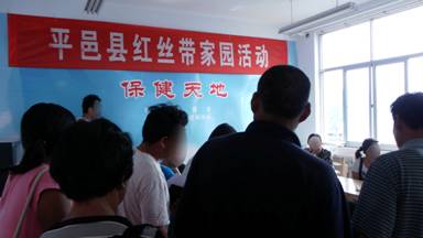 日前,平邑县艾滋病综合防治示范区办公室在县疾控中心五楼开设的艾滋病病毒感染者和病人集中活动的“红丝带家园”热闹非凡,全县38名艾滋病病毒感染者和病人,早早来到红丝带家园,共同参加艾滋病防治知识讲座和进行自身防护治疗经验交流。县疾控中心副主任、县示范区办公室业务主管相龙伟,县示范区办公室项目官员陈利,县疾控中心高危人群干预工作队队长宋丽梅,艾防科副科长彭新涛、医师许娟、艾滋病筛查实验室主任陈现亮、主管检验师赵君等和被邀请的县抗病毒治疗专家组成员、县结核病防治所有关专家等出席“红丝带家园”活动,为艾滋病病毒感染者和病人进行艾滋病防治知识讲解,解答他们的咨询,为治疗者进行治疗指导,并进行健康状况查体和并发肺结核筛查等。