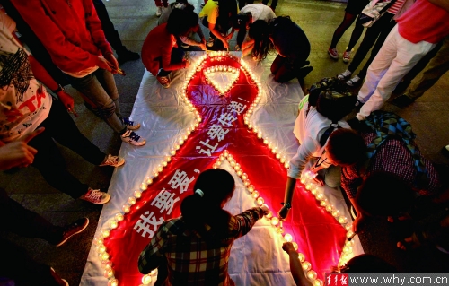 入夜时分,静安区团区委书记唐凌峰等与会27名嘉宾共同点燃了象征寄托哀思的红烛并每人提出一句口号,全场来宾纷纷传递手中的红烛,为因艾滋病逝去的朋友默哀,为受艾滋病影响的人们祈福,用跳跃的烛火寄托心底的哀思,他们将爱心的蜡烛形成一个巨大的红丝带形状。
