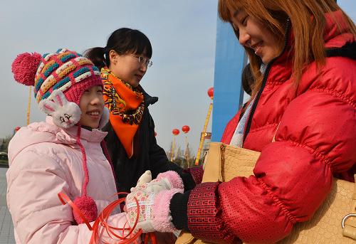 12月1日,山东医专的志愿者为市民系上寓意消除偏见的红丝带。当日是第25个“世界艾滋病日”,济南市志愿者走上街头向市民宣传艾滋病防治知识,加强预防、消除偏见。今年的“世界艾滋病日”主题是“行动起来,向‘零’艾滋迈进”。新华社记者 朱峥 摄