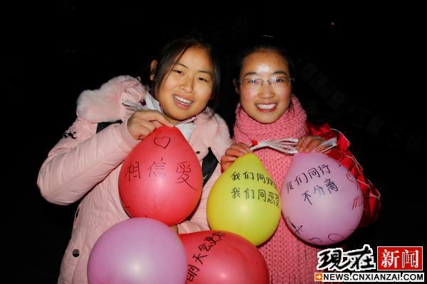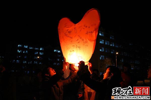寄托着学子们爱心愿望的孔明灯即将升起。