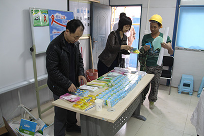 近年来,随着城市化建设的快速发展和二机场建设即将启动,大批农民工聚集到大兴区参与到建筑工作中来。因此,加强对建筑工地中农民工艾滋病知识的宣传培训显得更为重要。为落实相关工作要求,区疾控中心于2015年10月8日、9日、12日,分别前往金科天籁城、泰禾中央广场及恒大未来城三个在建工程,对该场所内的建筑工人开展艾滋病知识宣传工作,本次活动受众500余人,现场发放宣传材料500余份、安全套2000只,张贴宣传画5张。