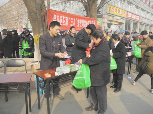 2016年3月3日,区妇联在城北街道八街灰厂路社区小广场举办2016年“两法”“两规划”宣传活动,区疾控中心充分利用这一有利时机,联合区禁毒办深入社区开展“拒绝毒品,远离艾滋”主题宣传活动。