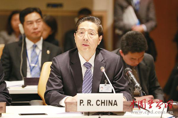 当地时间19日,在世界毒品问题特别联大期间,国务委员、国家禁毒委主任、公安部部长郭声琨出席了大湄公河次区域禁毒合作机制边会并讲话。本网记者张建鑫 摄