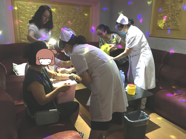晚七点,疾控人员同社区大夫来到其中一家娱乐城,经前期公安联系协调,负责人顺利组织当日在岗的所有女性服务人员集合于会议室进行培训。相关人员坐定后,疾控大夫用通俗生动的语言讲授了艾滋病的危害、传播途径及预防措施等知识,并针对“安全套需全程使用”、“带环不防艾滋”等常见疑惑进行解答强调;接着,疾控人员认真梳理了社区大夫对相关人员进行艾滋病检测的流程,提出“一人、一管、一卡、一号”的原则,保证整个检测过程高效有序进行;随后,为所有接受宣教检测的人员发放了知识手册和安全套等宣传品。九点过半,两家娱乐城的干预检测督导工作方圆满结束。