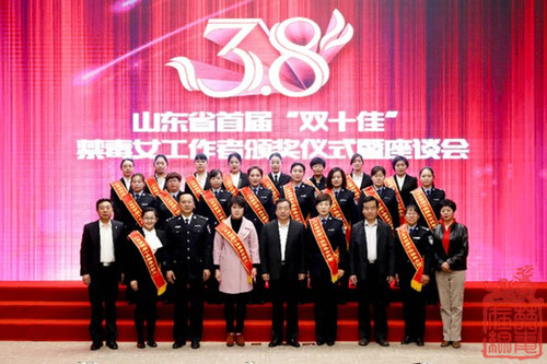在“三八”妇女节来临之际,山东省禁毒办、省妇联联合举行山东省首届“双十佳”禁毒女工作者颁奖仪式暨座谈会,对首届“山东省十佳禁毒女民警”和“山东省十佳禁毒女社工”进行命名和颁奖。山东省副省长、省禁毒委主任、省公安厅厅长孙立成出席会议。