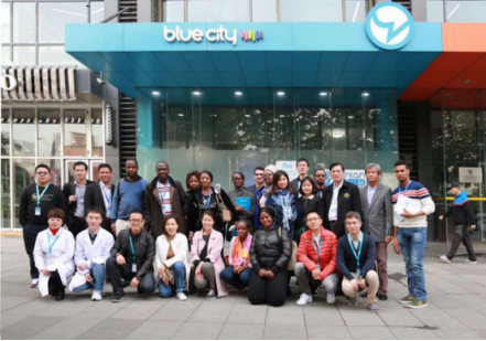 上午9时,19名非洲、东南亚国家防艾代表来到Blue City,在公司副总裁、首席医学官米国栋博士的带领下参观Blued办公区。