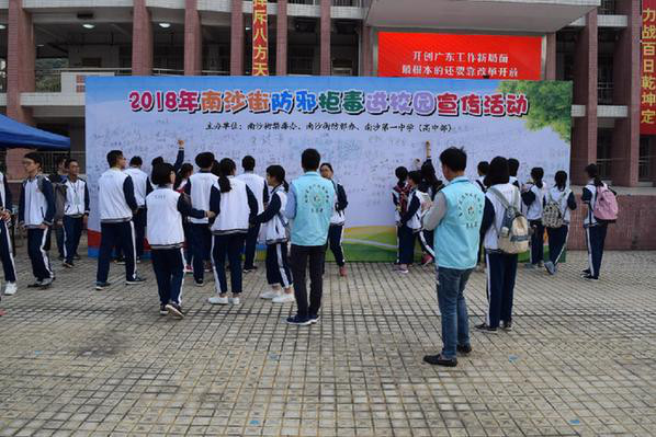 中国禁毒网讯 为防止毒品危害在校园蔓延,3月26日下午,广州市南沙街禁毒办在南沙第一中学高中部开展禁毒宣传预防教育活动。