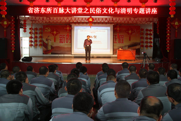 清明节到来之际,为大力弘扬中华传统民俗文化,有效激发戒毒人员家国情怀、感恩意识、戒治动力,4月3日,山东省济东强制隔离戒毒所邀请中国作家协会会员、著名书法家、淄博市民俗文化研究会秘书长王清涛教授到所作了《民族文化与清明》专题讲座,全体戒毒人员、在岗警察聆听了讲座。