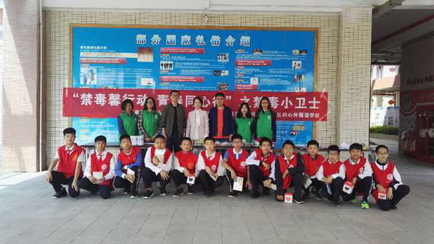 中国禁毒网讯(通讯员 陈晓芝)为进一步增强当代中学生对毒品危害的认识和自觉抵制毒品的意识,4月9日上午,在深圳市坪山区禁毒办的支持下,深圳市坪山区同心外国语学校联合深圳市温馨社工服务中心开展了以“禁毒馨行动,青春同心行之禁毒小卫士”为主题的校园禁毒宣传活动,组织同心外国语学校的禁毒小卫士在校园内开展了趣味禁毒游园会。