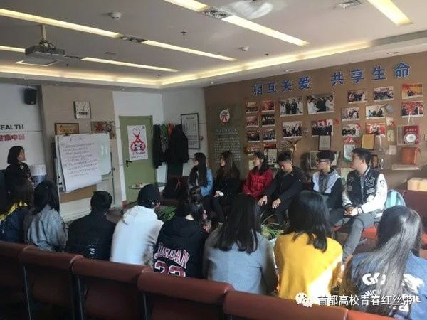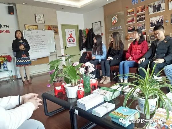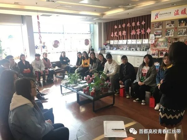 首先,同学们先到达了北京红丝带之家。在红丝带之家温馨的办公室内,老师们讲述着HIV感染者的经历,每位同学都认真的倾听老师的讲解。