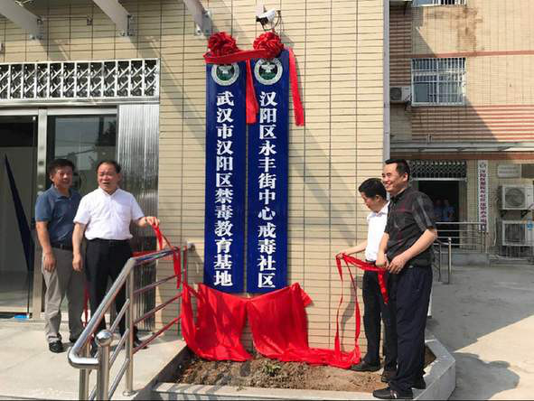 中国禁毒网讯 为落实 “2018服务民生八件实事”,打造吸毒人员回归社会系统工程,今年以来武汉市汉阳区先后建成7家标杆中心戒毒社区。近日,汉阳区禁毒教育基地暨永丰街道中心戒毒社区正式建成投入使用,武汉市禁毒委副主任、市公安局副局长张荣成,武汉市禁毒办常务副主任、市公安局禁毒支队支队长陈黎明,汉阳区区委副书记、政法委书记范礼奎,汉阳区禁毒委副主任、副区长彭焚共同为教育基地隆重揭牌。