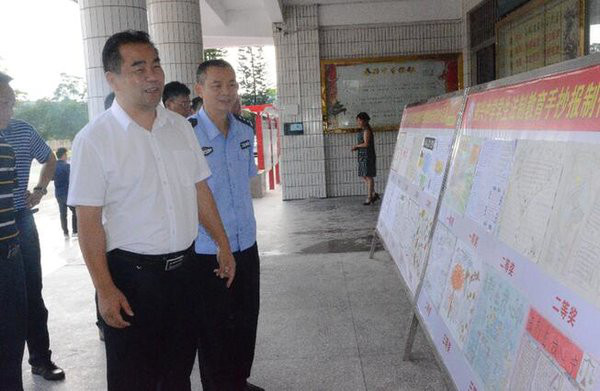 中国禁毒网讯 7月13日上午,广东省阳西县县委副书记、县长、县禁毒委主任谭忠健在阳西县副县长、县禁毒委副主任、公安局局长蔡传雄,县委政法委、县禁毒办、县财政局、县教育局负责人等的陪同下,督导检查6.27青少年毒品预防教育工作,实地查看了奋兴中学省级毒品预防教育基地,了解该校开展青少年毒品预防教育工作的情况,后到县公安局组织召开工作会议。