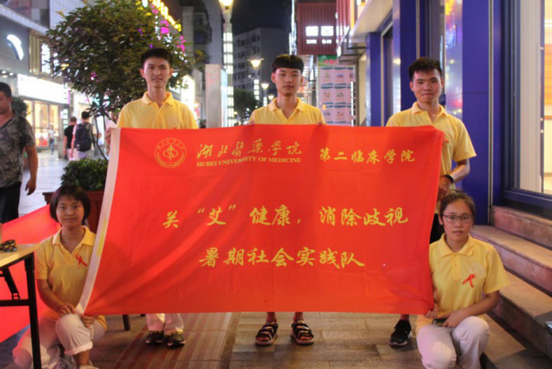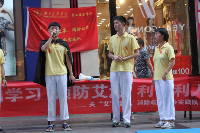 7月19日的下午,湖北医药学院“关‘艾’健康消除歧视”暑期社会实践队来到了十堰市五堰步行街为广大人民群众普及有关艾滋病传播途径的知识,以便让更多的人意识到,有关艾滋病,药物虽不可治,但可预防的事实。