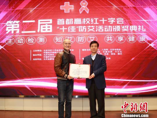当天,北京市红十字会获赠价值50万元的艾滋病检测试纸。同时,中国劳动关系学院、中国政法大学、北京交通大学、北京第二外国语大学、北京林业大学、首都经济贸易大学、中国人民公安大学、中国社会科学院大学、北京协和医学院、中华女子学院十所高校获得“第二届首都高校红十字会十佳防艾活动”殊荣。(完)