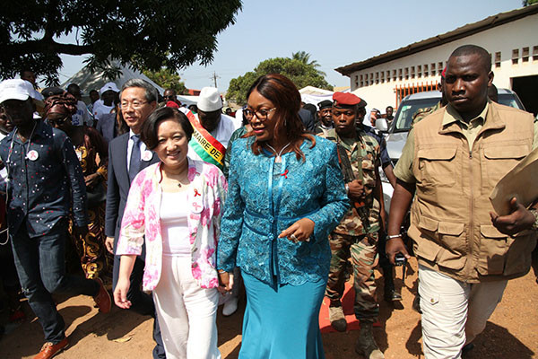 12月8日,中国驻几内亚大使黄巍偕夫人余慧同几内亚总统夫人杰内·孔戴在科纳克里共同主持艾滋病防倡导活动。 中国驻几内亚大使黄巍偕夫人余慧8日同几内亚总统夫人杰内·孔戴在科纳克里市马塔姆区医疗中心共同主持艾滋病防控倡导活动。几卫生国务部长拉马,社会行动、妇女促进和儿童部长西拉,几国民议会议长夫人和多位政府部长夫人,外国驻几女使节和使节夫人,非政府组织及当地艾滋病患者和妇女、青年、学生代表等近千人参加。
