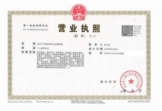 中国首家艾滋病医院---北京中科创新国际艾滋病医院于2019年03月06日取得营业执照。经营范围包括:医疗服务;零售药品;销售食品;销售第三类医疗器械;互联网信息服务;销售医疗器械I类、II类;技术开发、技术推广、技术转让、技术咨询、技术服务;健康咨询等。