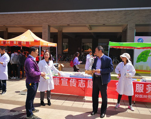 活动中,校学生红十字会、校医院医务人员和老师们组成了志愿者队伍,向过往的师生发放印有结核病和艾滋病防治知识的宣传资料,为大家讲解了肺结核病的传染源、传播途径、症状、预防等知识。同时,校医院党支部还以本次活动作为主体党日,党员们带头开展义诊服务,为同学们讲解了疾病预防、学生医保、保健等方面的知识,走进社区,服务师生。
