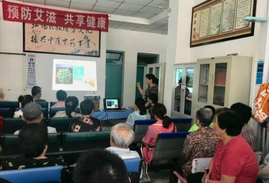 6月11日上午,济南市槐荫区疾控中心艾防科工作人员,来到仁爱社区卫生服务站,开展面向老年人群的预防性病艾滋病知识讲座。