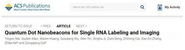 中国科学院武汉病毒研究所崔宗强研究员与武汉大学何治柯教授合作构建了一种新型量子点纳米信标,这种信标可实现艾滋病毒RNA单分子标记与示踪。
