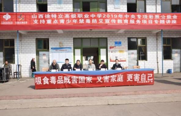10月10日,2019年中央专项彩票公益基金支持重点青少年禁毒防艾宣传教育服务项目专题讲座在我县山西徐特立高级中学举行。县禁毒委、县公安局、团县委等单位领导出席活动。县公安局禁毒大队民警向学校高一、二年级1500多名师生作青少年禁毒教育和预防艾滋病知识讲座,禁毒防艾宣传教育志愿者现场分发各种宣传资料并教同学们识别毒品。校方领导表示,希望同学们要树立“四个意识”,构筑“三道防线”。