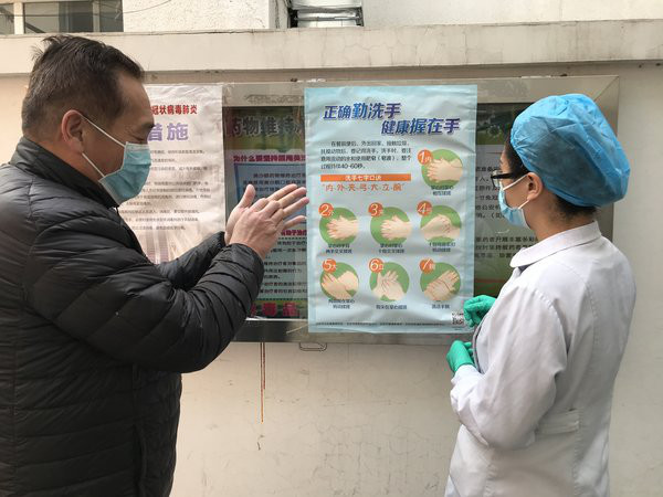 疫情期正值春节,为进一步做好门诊防控工作,工作人员坚守岗位,设立预检分诊处,专人负责对进入门诊服药治疗者逐一进行体温检测,为治疗者免费发放一次性口罩,并对治疗者进行手部消毒,询问健康状况及接触史等。服药后工作人员向治疗者讲解正确的洗手方法,宣传科学防控知识。
