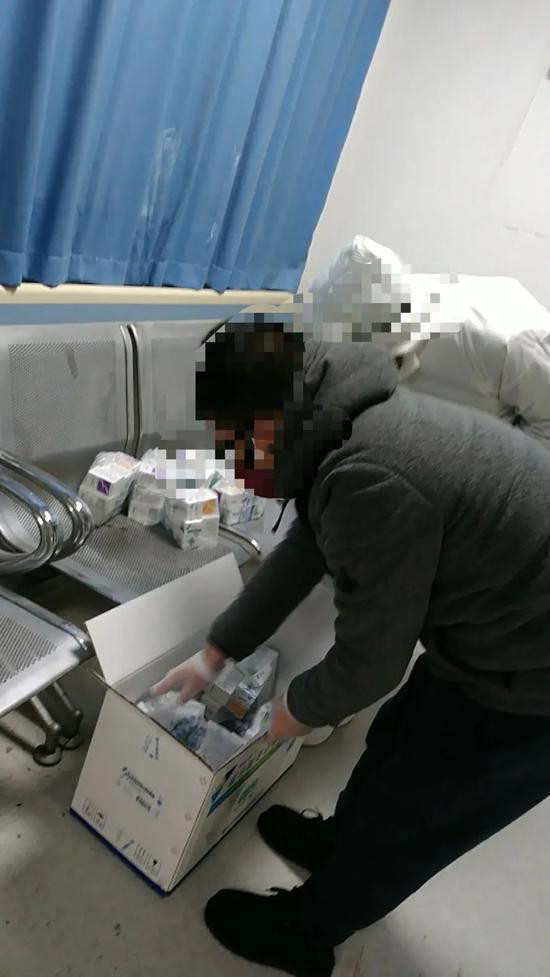 志愿者在医院领药。图/受访者提供