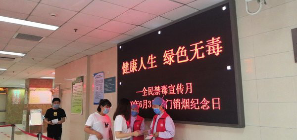 在禁毒宣传月期间,医院通过LED屏展示“健康人生,绿色无毒”的活动主题,在医院门诊大厅向就诊人群发放毒品知识宣传册及防艾知识手册,讲解禁毒防艾知识,形成浓厚的宣传氛围。此外还利用医院微博、微信平台发布禁毒防毒识毒及毒品危害的宣传知识,利用分诊台电视播放宣传片,指导患者扫码关注医院微博和微信平台,关注中国禁毒、北京禁毒和大兴禁毒微信公众号,了解更多防毒禁毒相关知识。宣传月期间,共发布以禁毒为主题的宣传知识14条,受众人数7660人,微信平台发布1条。6个电视每天轮流播放“4分钟看懂毒品视频”3—5次,累计播放350余次。