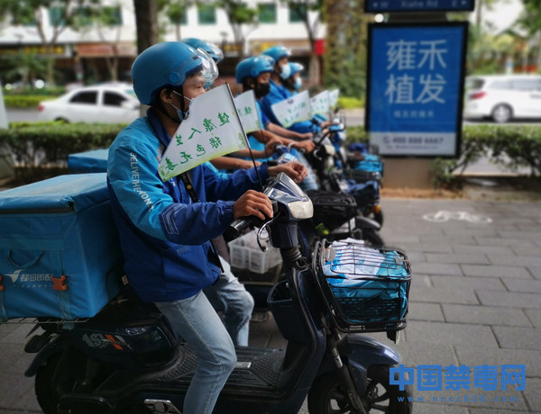 “禁毒是每一位公民的义务和职责,有必要让更多市民了解毒品的危害和防范毒品的方式。在为用户送达美味餐点的同时,让禁毒知识融入群众日常生活。禁毒宣传,从我做起。”外卖骑手表示。