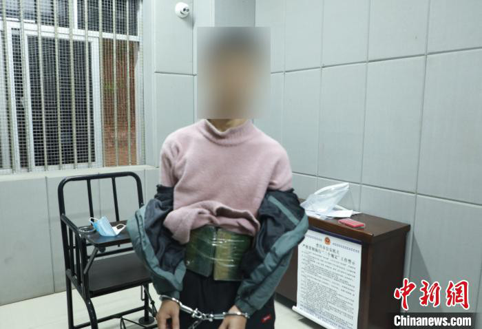 图为警方抓获的犯罪嫌疑人与藏在其身上的毒品。西盟县公安局供图